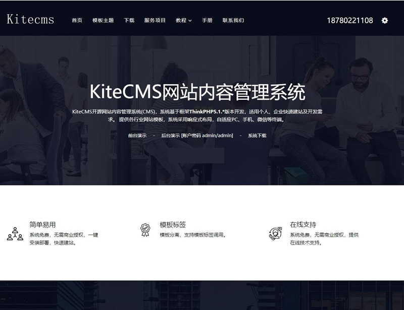 KiteCMS系统基于Thinkphp 5.1.37 版本开发,真正的开源免费,可以用于商业目的,无需任何授权。后续会不断的完善优化系统,开发更多实用的模块,插件,模板。