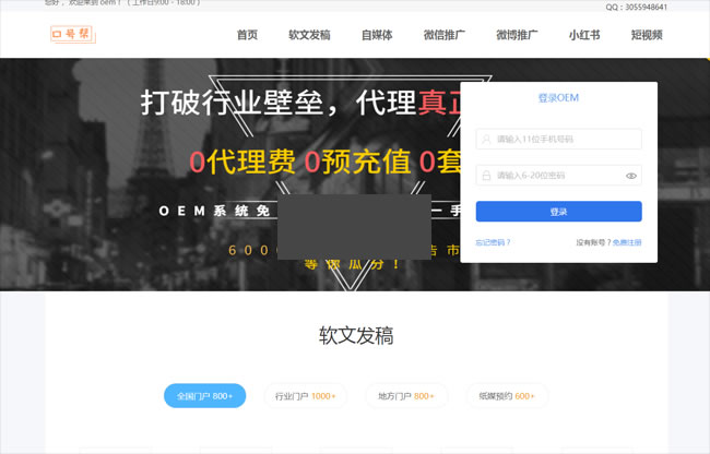 口号帮全媒体整合营销OEM系统 主要应用于企业、团队、工作室、媒介、文化传播公司、网络推广公司,网络营销公司的一个自动免费快速上线的系统。不管你是个人还是公司都可以基于此系统快速建立属于自己的营销平台。