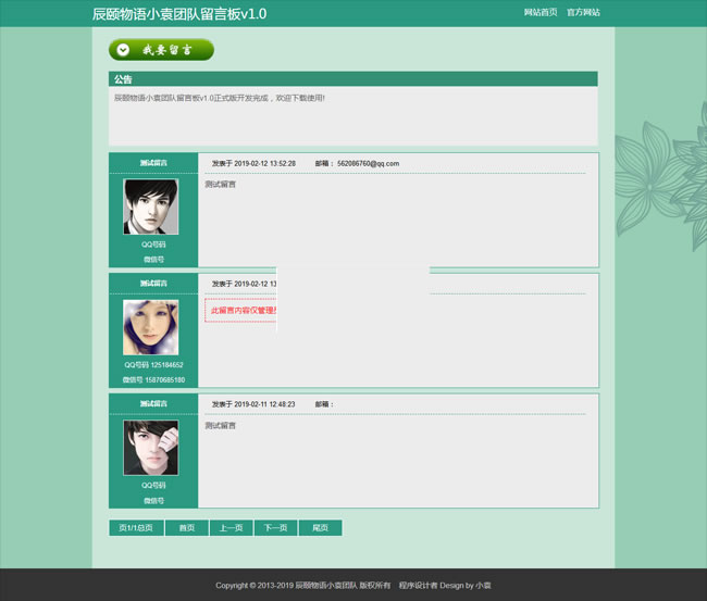 辰颐物语小袁团队留言板 v1.0 更新日志