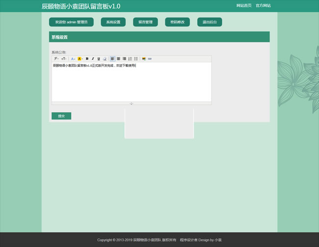 辰颐物语小袁团队留言板是PHP+MYSQL开发的一款开源的跨平台留言系统,以"简单+好用"为基本产品理念,后期会提供多种风格的留言板供你选择。
