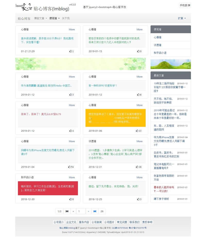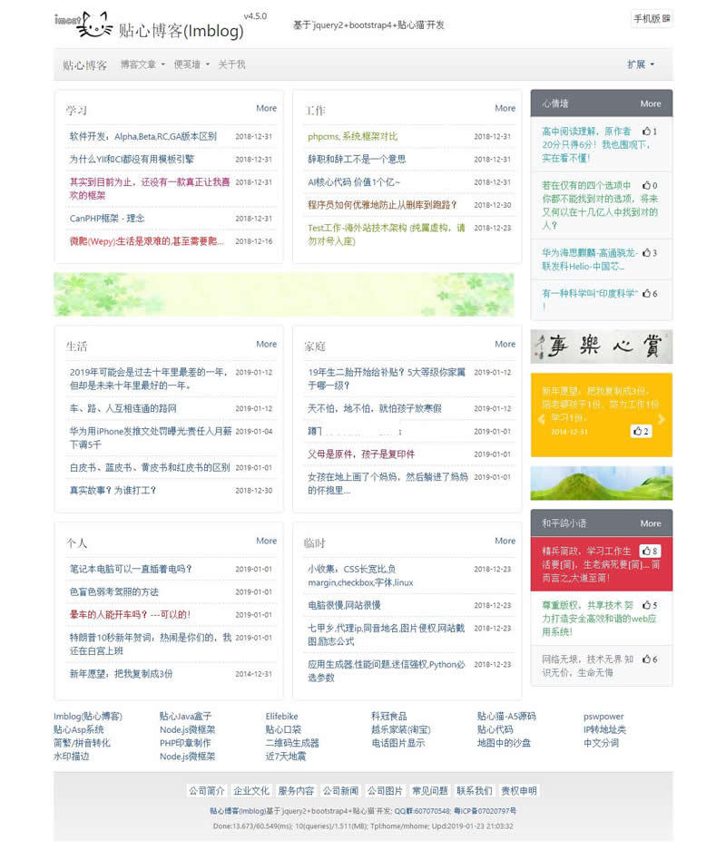 贴心博客(Imblog) 是基于jquery2+bootstrap4+贴心猫开发的博客系统;