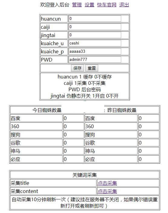 后台可以自动采集title content(如果配置为caiji 0将调用采集的content句子组合为文章内容)