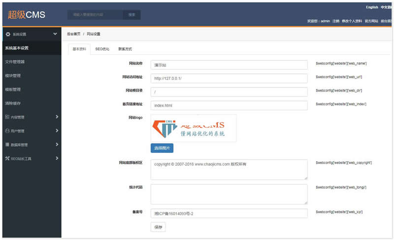 超级CMS内容管理系统(以下简称产品)由SEO研究中心为了解决网站优化问题而研发的一套产品,本产品采用面向对象方式自助研发的MVC框架开发,它是一款高效开源的内容管理系统,产品基于PHP+MYSQL架构,可运行在Windows、Linux、MacOSX、Solaris等各种平台上。