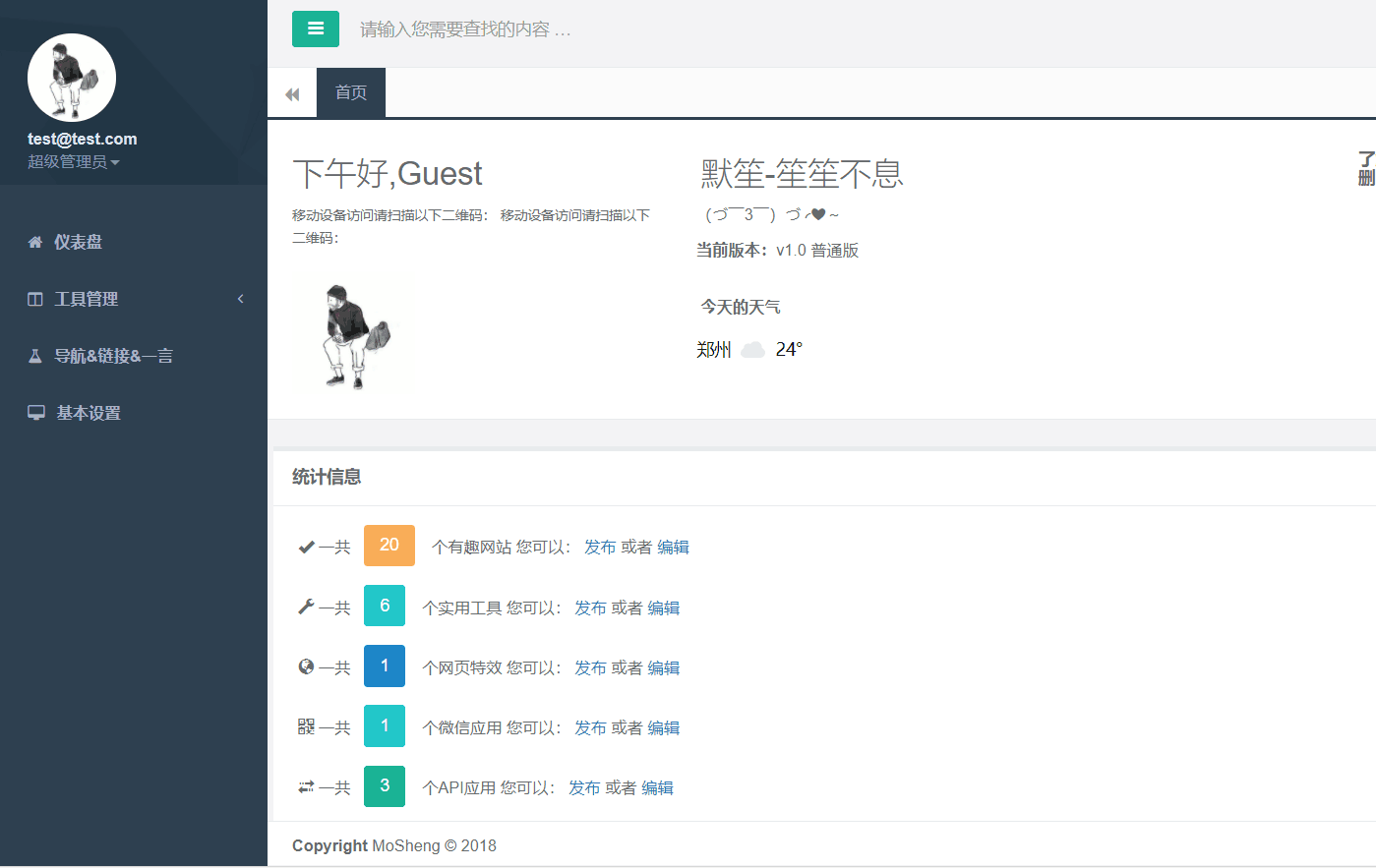 默笙工具箱目前的版本集合30种小工具和API,程序采用Thinkphp框架,目前版本为开源版,如在Linux上使用请修改T文件夹 为小写t。