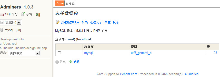Qadmin 源于 Adminer source code二次开发而来.本程序非官方发布版本,二次开发改动的位置许多,基本上修复了官方所有的bug,兼容php 5.4+,html也更规范化。同时放弃引用官方两个外部文件,支持关闭左侧栏,也支持接口调用。是广大数据库管理员,程序员管理db的最佳工具。