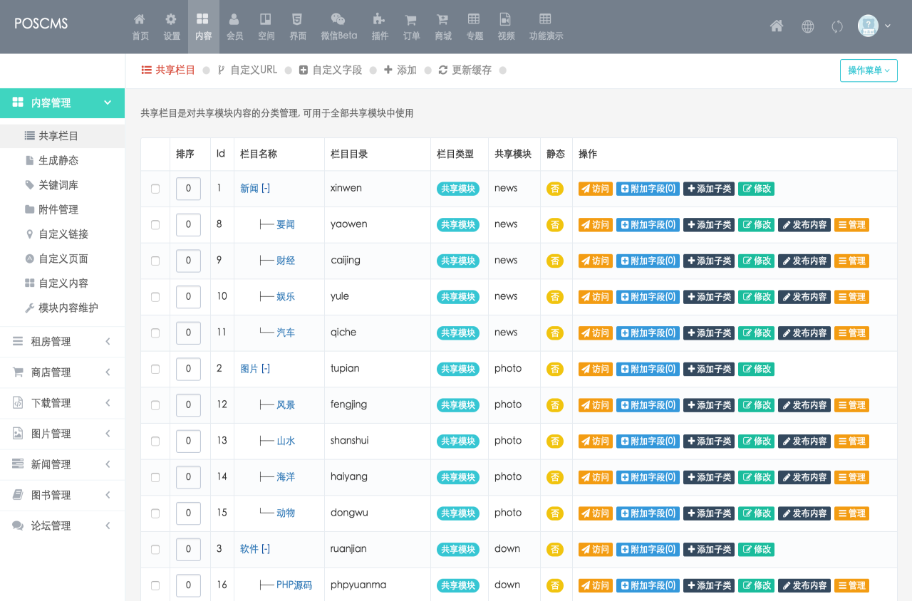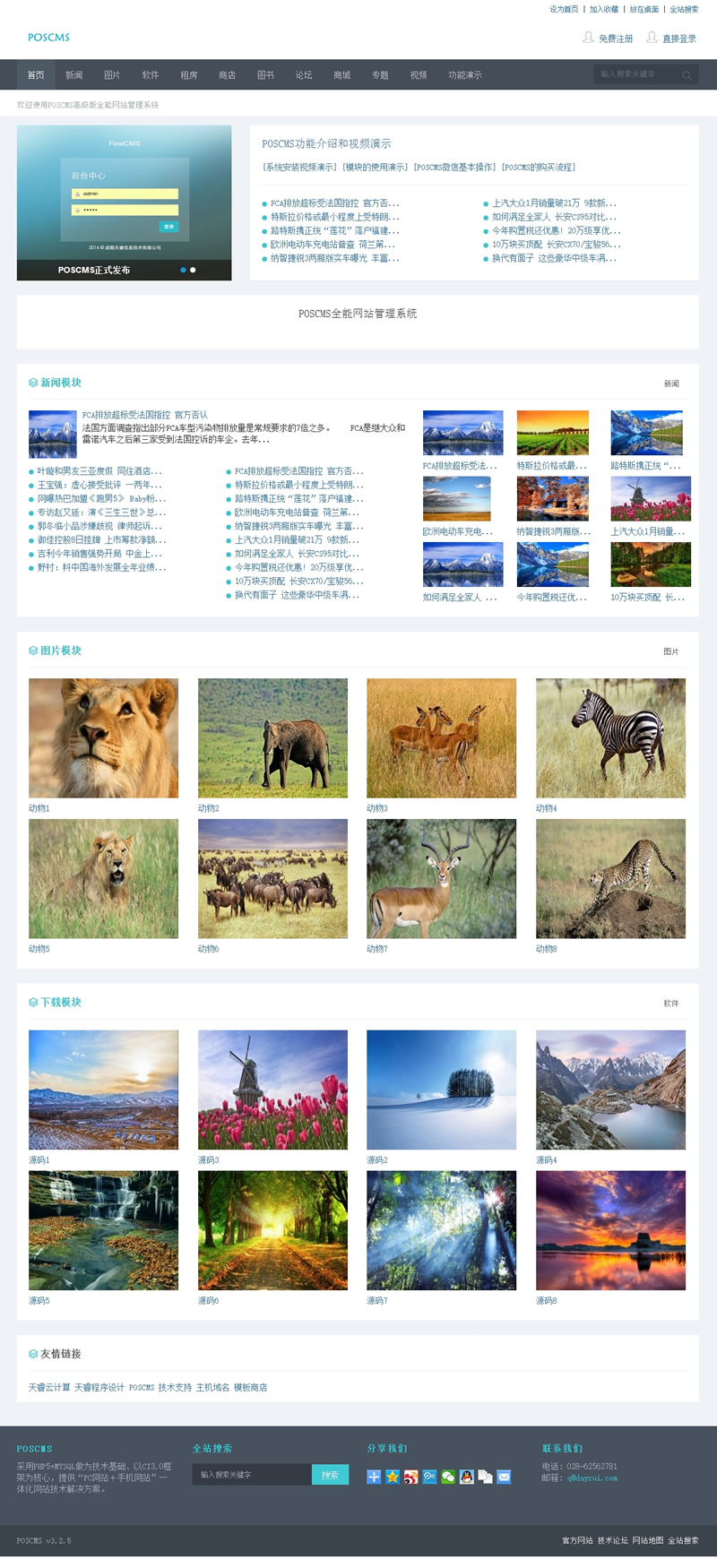 PhpOpenSourceCMS(简称POSCMS)是Php+Mysql开发的一款开源的跨平台网站内容管理系统,以“实用+好用”为基本产品理念,提供从内容发布、组织、传播、互动、“PC+移动”的一体化网站解决方案。