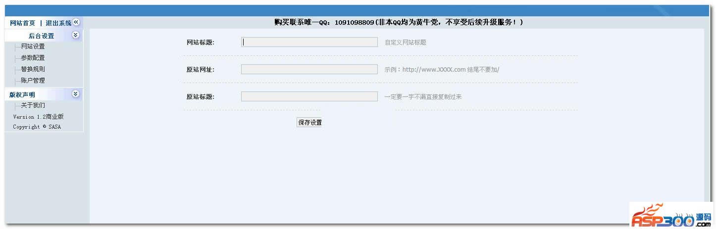 使用方法:1、把所有文件上传到网址根目录(空间必须支持PHP程序)2、输入http://您域名/login.php登录后台,帐号admi,密码sasadown3、修改后台设置即可“偷”站完成。