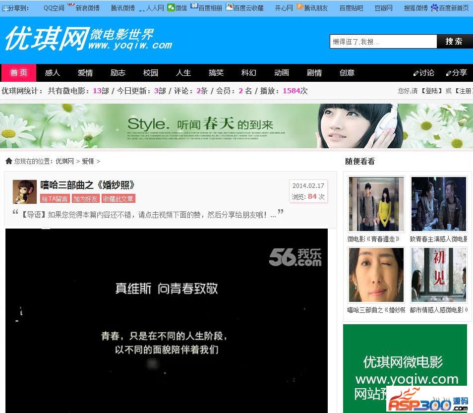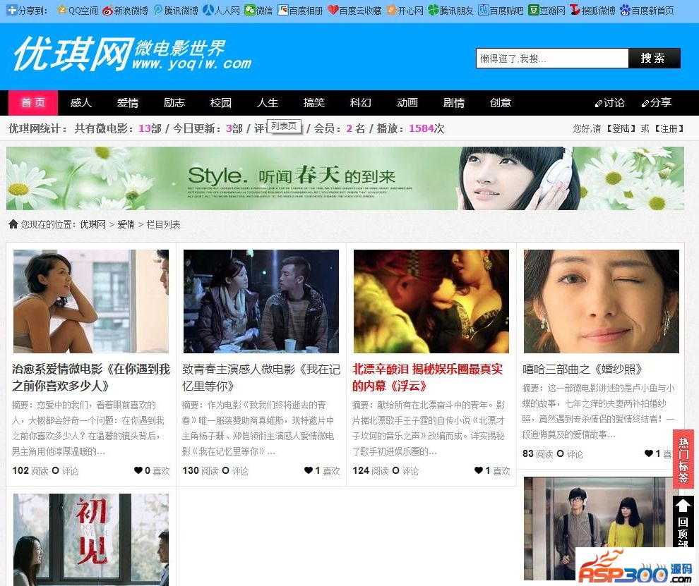 织梦微电影分享网站织梦整站源码,测试完整无错,兼容主流浏览器。