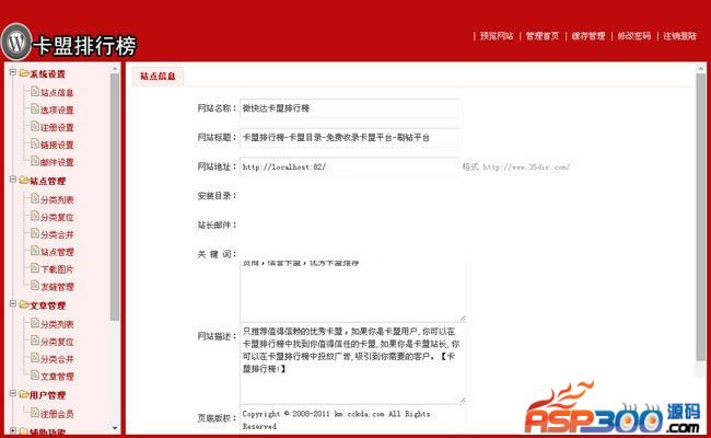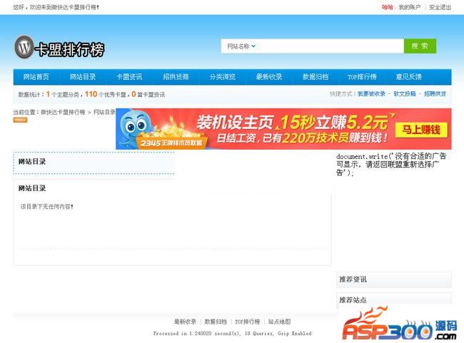 卡盟排行榜目录是由站长目录修改成的,一些功能都是站长目录基本功能。添加了排行榜,广告位后台直接添加 ,卡盟咨询,卡盟友情链接交换等功能。
