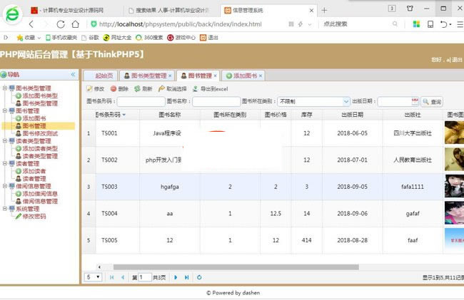 别看双鱼林基于ThinkPHP5图书管理系统demo只是一个简单的图书管理系统,麻雀虽小,五张俱全,实现了常见字段比如字符串,整型,浮点型,日期型,图片型和文件型的添删改查,查询条件采用多条件组合模糊查询,查询结果都采用分页显示,其中字符串分为单行文本字符串,多行文本字符串和超级富文本字符串,对于富文本字段我们采用的是百度出品的UEditor插件,为网站增色不少!后台管理员登录采用了验证码,查询的结果记录都可以导出到Excel,对其中的图片上传和文件上传专门写了2个方法uploadPhoto和uploadFile放到了基类中,所有控制器类继承基类,实现了代码的精简优化!