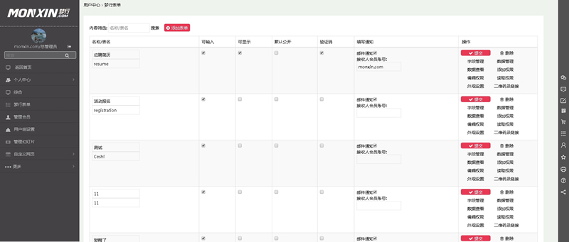 梦行M.X表单系统 应用场景 各类信息在线登记