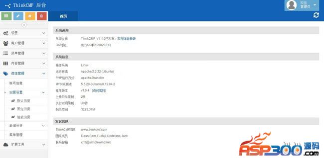 ThinkCMF是一款基于ThinkPHP+MYSQL开发的中文内容管理框架。ThinkCMF提出灵活的应用机制,框架自身提供基础的管理功能,而开发者可以根据自身的需求以应用的形式进行扩展。每个应用都能独立的完成自己的任务,也可通过系统调用其他应用进行协同工作。在这种运行机制下,开发商场应用的用户无需关心开发SNS应用时如何工作的,但他们之间又可通过系统本身进行协调,大大的降低了开发成本和沟通成本。