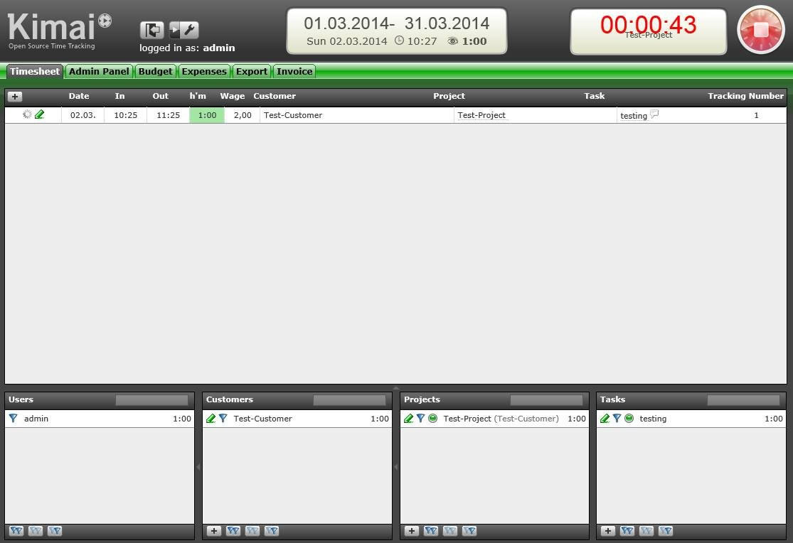 Kimai是一个开源的工作时间计划管理程序,您可以Kimai关于您的工作时间显示和打印非常精确的陈述,并创建Zeitabrechnungn为您的客户,每年,每月,每日按客户,按项目,按活动…