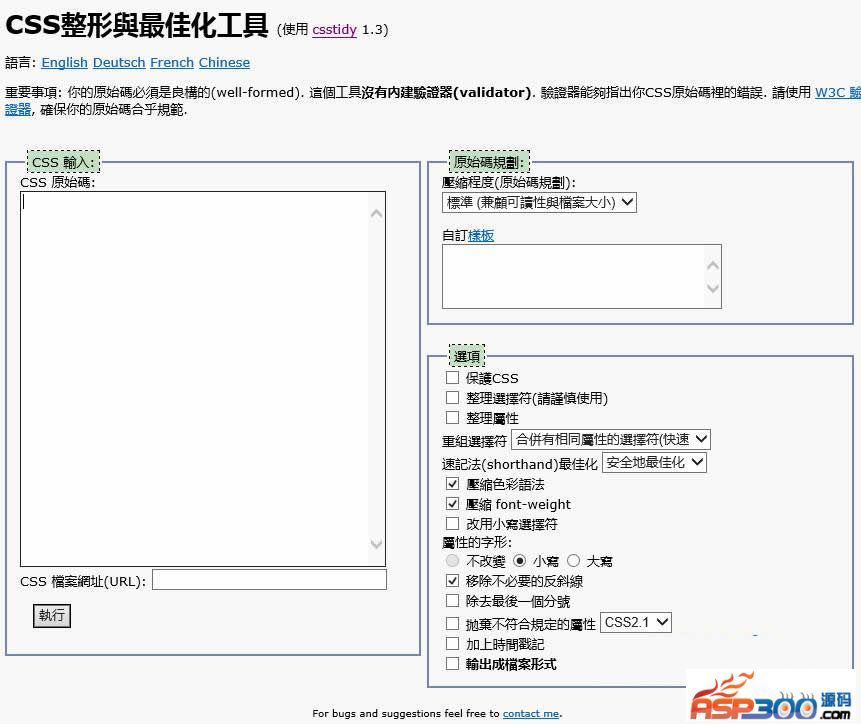 CSSTidy是一个开源的样式表CSS优化工具,使用csstidy可以轻易的将你的CSS样式压缩,压缩率能达到1/4以上,还可以自动将CSS代码中的注释、多余的属性去掉,并将相似的样式合并以达到优化压缩CSS样式最大化。