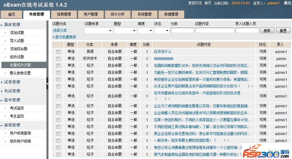 功能特点:强大的反作弊功能 智能的组卷方案 试题添加管理简便 兼容所有操作系统 快速实现系统集成 用户添加管理简便 权限设置人性化 完善的数据备份 支持14种不同题型 多维度统计分析 安装升级简单方便 兼容所有浏览器 支持万人同时在线 在线支付 多语言支持