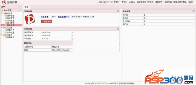 Winner权限管理系统(又称:胜利者权限管理系统)是一款基于PHP+Mysql开发的web基础系统,系统内置用户管理、组别管理、部门管理,同时系统还能动态开启子公司,当您的公司有多家分公司时,这个功能可方便您的操作。