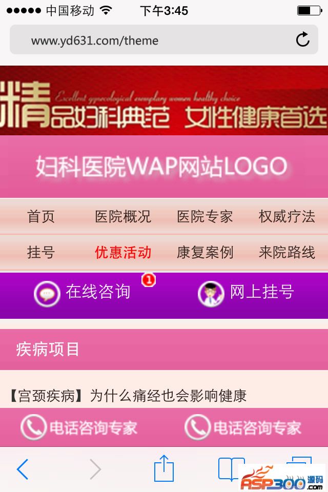 3、适合当下医疗,尤其是妇科、女性行业医院站点的WAP站点
