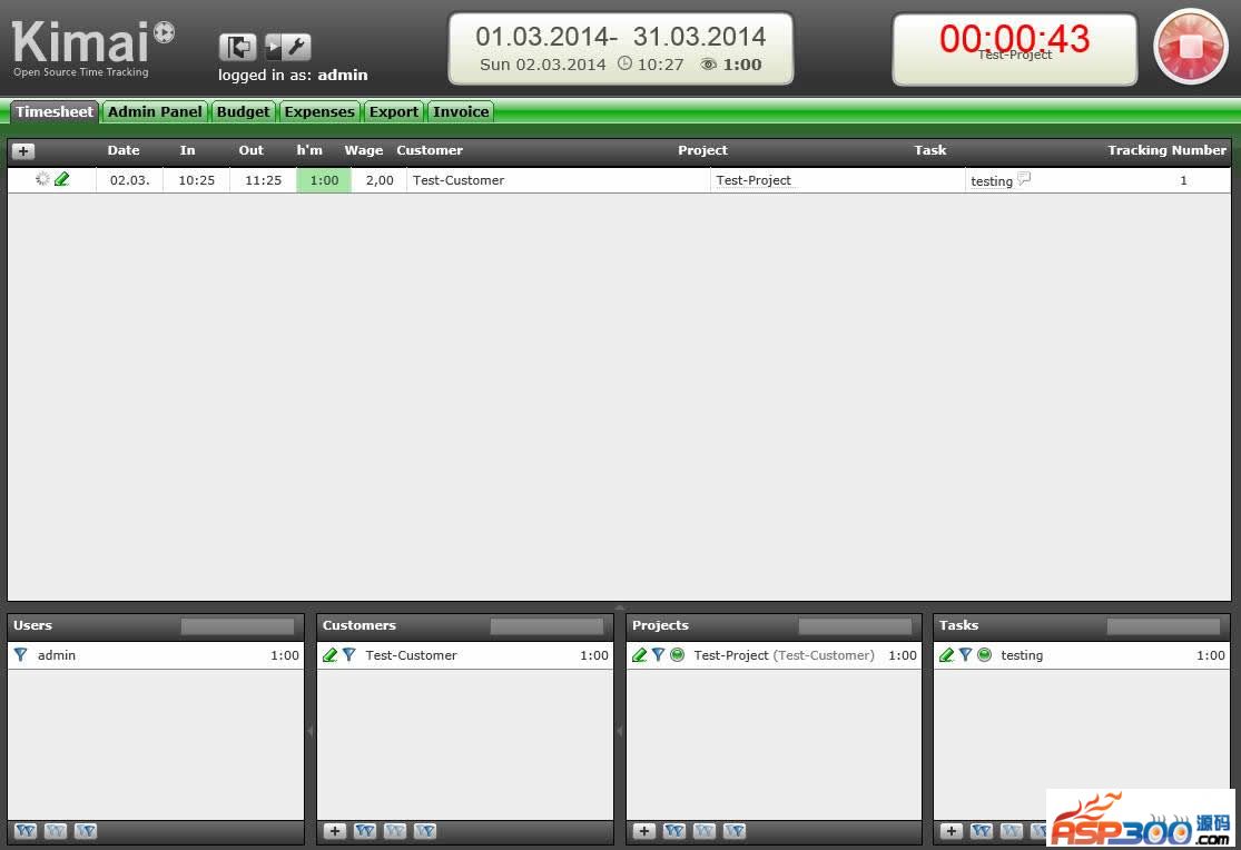 Kimai是一个开源的工作时间计划管理系统。您可以Kimai关于您的工作时间显示和打印非常精确的陈述,并创建Zeitabrechnungn为您的客户。每年,每月,每日按客户,按项目,按活动…