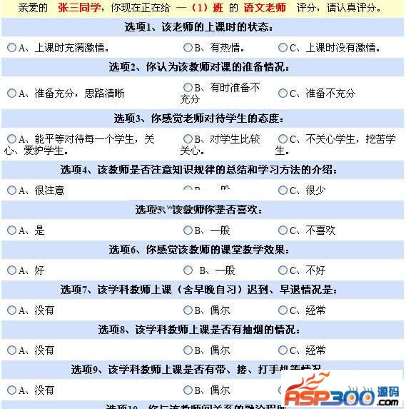 (2)实现功能:学校学生对任课老师的教学质量的评价。