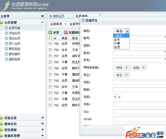 优品致远社团信息管理系统v1.0是国内第一流的大学社团信息管理系统,能够多条件精确搜索到会员群之后,带昵称给会员群发手机短信,带昵称给会员群发Email邮件,通过Excel数据文档批量导入会员数据,能够通过后台直接导出全部的会员信息,可以精准匹配会员之后,导出筛选之后的会员。可以自行添加、修改、删除会员,字段为:学院、系、专业、班级、姓名、学号、密码、手机、QQ、email、办公电话、地址、邮编、博客等等,可扩展字段。记录与会员的交往记录,让您管理社团如鱼得水,游刃有余。