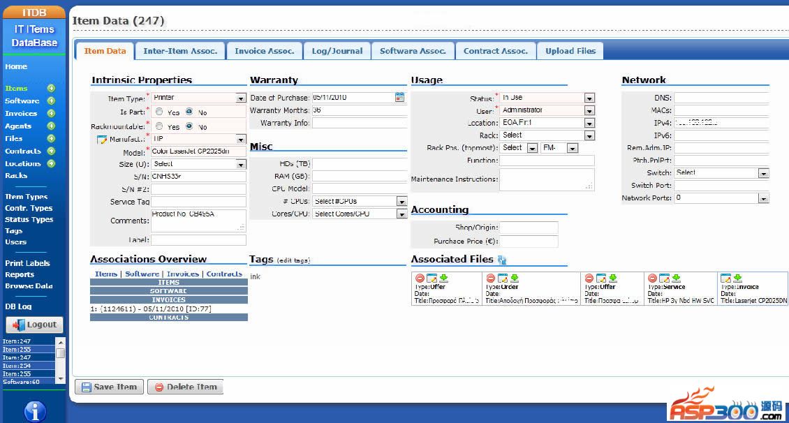ITDB是一个基于Web的办公环境IT资产设备管理信息系统,主要适用于IT设备,但不仅限于此。