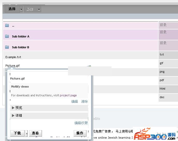 Mollify是一个基于AJAX的Web文件管理器,提供一个整洁和可定制的用户界面和PHP的后端。这是很容易的配置,包括完全可配置的多出版目录别名。