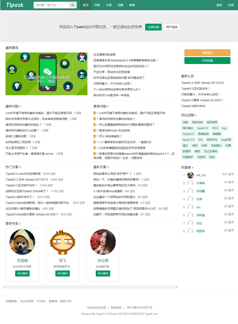 Tipask是一款开放源码的PHP问答系统,基于Laravel框架开发,容易扩展,具有强大的负载能力和稳定性。