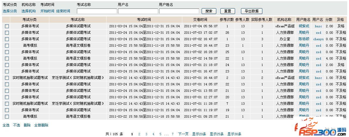 - 支持查看考试实际参加人员缺考人员、应考人员