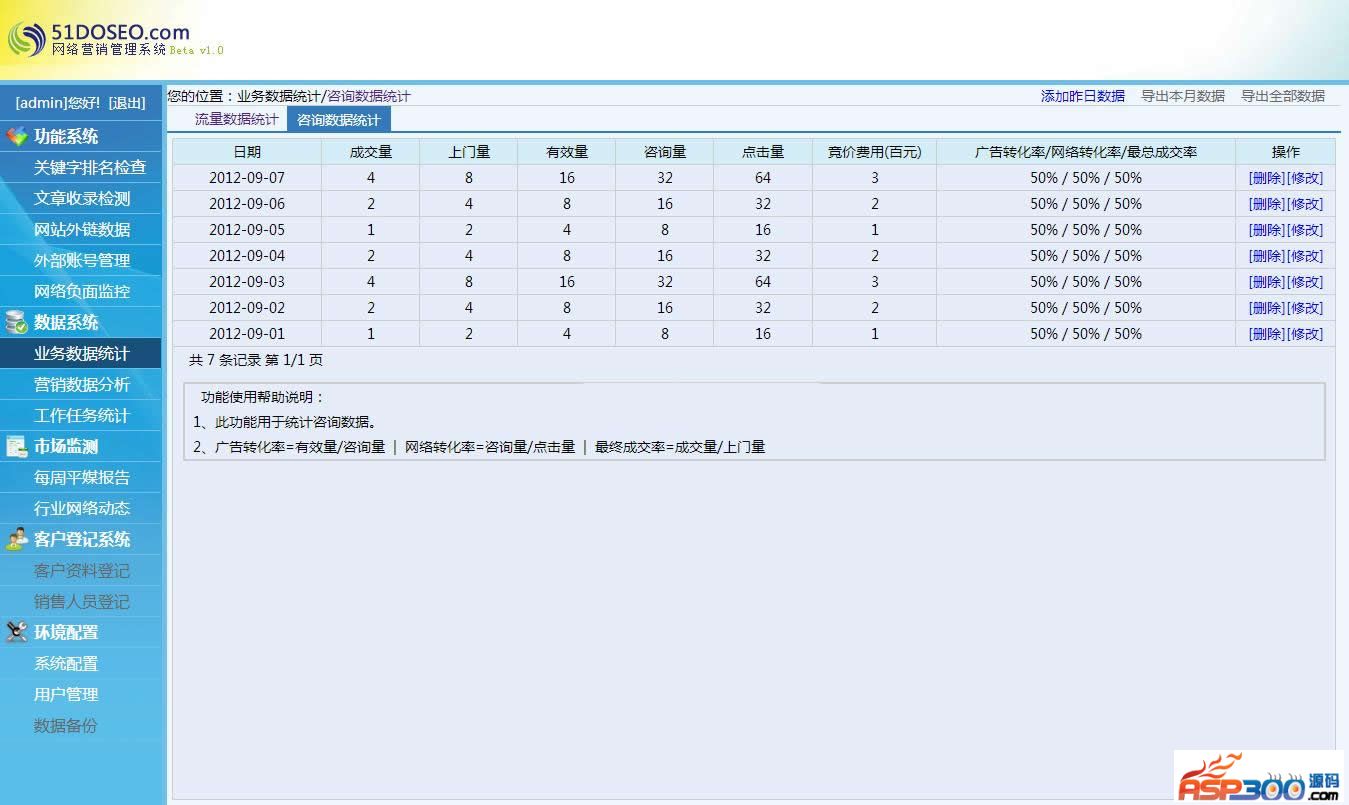 咨询数据统计主要是统计每天自己网站的咨询数据。