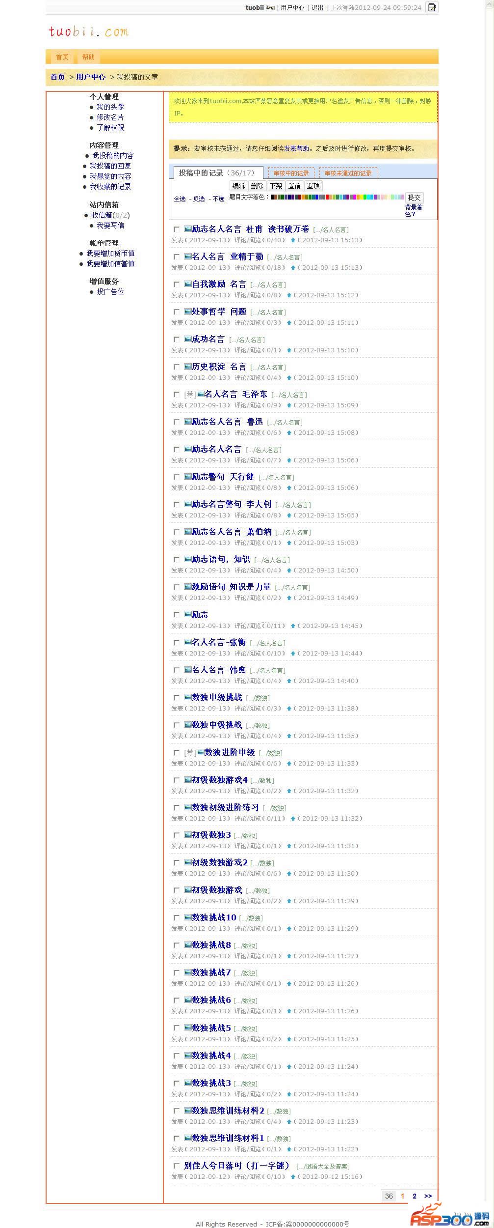 演示空间最近备案中,可能无法正常访问。以下说明认真看看,很有帮助的。无广告无后门,无版权,三无产品纯公益哈!测试数据默认管理员:tuobii 密码:123456安装,先建立数据库,在源码中,直接修改set/set_sql.php,填写数据库名称,密码,上传文件,访问,登陆后台管理。程序中有测试数据可以使用,将tuobii.sql导入数据库既可以看到效果。方便前期测试,测试好了在删除测试数据导入或添加自己的数据就ok了。导入数据库的时候注意版本信息,高版本不支持低版本,现在一般的主机应该都可以的。自己安装的服务器套装可能会有版本问题。说明:我个人喜欢修改源码,看看别人的编程风格,有完美主义倾向,擅长seo,但是美工很一般。这套系统开始是在网上下载的一个论坛系统。绝对相对比较简洁。就下载下来修改了一下。现在即可以做cms,也可以做分类信息网站。当然他本身是个论坛。会有功能还是比较强大,文章审核和在线编辑都比较容易。管理界面做了很大程度的美化。1、由于论坛帖子页面一般是不显示文章列表的,在修改风格的时候增加了“最近更新”和“较多关注”两个栏目。2、同时由于之前没有tags功能。在数据库中新增了字段用于支持tags。主要是从seo的角度去考虑,更利于增加点击率和搜索页数。3、最开始的那个论坛由于想实现快速搜索,增加了搜索表,但是删除的时候没有完全同步。本系统修改后正常。4、为了能够在3中系统之间正常切换,系统的优化了评论的显示。5、这套系统的广告布局利用txt直接添加代码方便而快捷,当然各有所好。修改也是很容易的,去掉包含文件直接添加代码也不错。或者更有创意的方式。我个人不提倡用数据库的方式管理广告。广告嘛,也不能太多,还要考虑变化。数据库没有页面方便。6、修改了用户名片的显示,更加清爽易用。同时管理界面更加简洁。不像一般的系统太复杂,操作都要看上一天的说明,更别说修改了。如果你想要一套清爽的系统,架设一个个人网站,专题网站,某个爱好的网站。行业信息分类的网站。本套系统在实用不过,他虽然没有那些主流的系统那么多无聊的功能,但是简洁,以控制。容易修改。更重要的是,我虽然花了近2个月去修改一些细节和之前作者部分加密的内容,一些漏洞,一些无聊的版本版权信息。但是你不需要记住我,也不需要添加任何的版权,链接,完全看你的心情,你想怎样就怎样!!绝对的自由!当然整个页面很多风格看起来还有很大加强和完善的余地,但不要全盘否定哦,很多细节是陶腾多年搜索引擎优化的心得哦。要琢磨下内链结构的用途哦。:),好了,喜欢的朋友,用得愉快。我QQ:1085746694 ,有需要找我,注明来意。广告的朋友,其它需求,绕道,谢谢。修改程序以前的信息2、论坛、分类信息二合一系统,双用网站建设。3、MySQL分区、索引操作,快捷运行、高效承载。5、强大的管理后台:无限级自由分类、风格模式转换、伪静态支持、文章审核、成员管理、群发邮件、支付宝收银……6、精炼的用户中心:头像在线生成、个人名片制作、文章管理、悬赏、收藏、短信、货币及信誉管理……7、所见即所得的tuobiiediter论坛编辑器。8、多管理员及版主支持。9、栏目分类已预装完毕,可按照自己的需要修改设定。10、轻松管理广告位。11、浏览器测试IE6、IE8、360、Firefox、Chrome、Safari、Opera兼容。12、更多精彩实用尽属tuobiiFIcode二、【程序安装】1、打开压缩包,将包内文件直接上传至支持PHP+MySQL的空间即可。2、管理员后台地址:manager.php。或管理员登录后点击帐户名后面的小钥匙图标进入后台。3、基础管理员:admin 基础管理员密码:admin4、提示:最先进行数据库设置,建立数据表后即可正常使用。