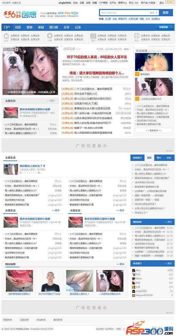 安装教程:先将文件夹【com55625_blue】传到空间上的【template】文件夹下,然后进入后台:界面——风格管理选择模版进行安装即可。