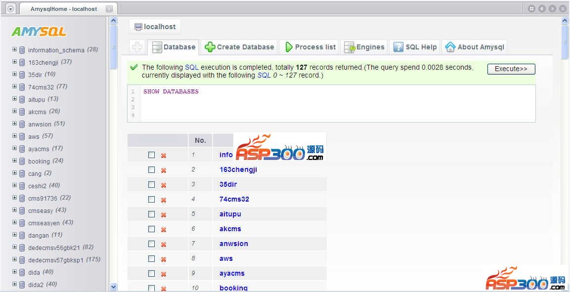 AMS 易用安全高效的MYSQL管理系统。Amysql – AMS简介01) 高效: 应用AMP-PHP框架与AMF-JS后台框架开发,支持同时运行多个数据库、数据表窗口、支持自定义扩展插件等。02) 强大: 强大的多行SQL执行能力,支持一次执行多行SQL并多窗口完美表现各行SQL的运行结果。03) 高亮: 支持SQL高亮显示,有效防止书写SQL时错写库表名、字段名与及MYSQL相关关键字。04) 扩展: 实现版块以JS扩展形式预载,数据库列表、数据请求发送等以JSON格式传输,无刷新快速呈现。05) 易用: 支持版块右键菜单操作与快捷键响应,支持鼠标划拉选择或Shift按键选择多行数据,使用简单、操作快速方便。06) 友好: 友好的数据分页展现,解决PHPMYADMIN SQL LIMIT 10000或关联查询数据量过大加载显示不佳问题。07) 其它: 支持用户扩展开发、良好架构,简单安全易用,等……