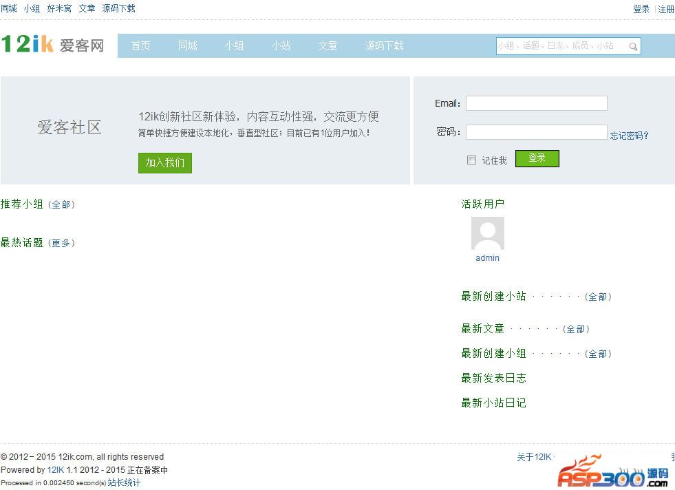 爱客网开源社区程序,内容互动性强,交流更方便 简单快捷方便建设本地化,垂直型社区,包括小组,小站,文章,同城,等特色模块!完全免费开源!
