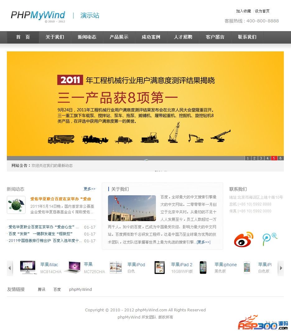 PHPMyWind是一个品牌,一款基于PHP+MySQL开发符合W3C标准的建站引擎。它将带给人们一系列高效的,成熟的企业网站建设解决方案,让您的信息以更健康的形式高速传递给需要它的人们,同时让您感受通过PHPMyWind带给您畅快体验。