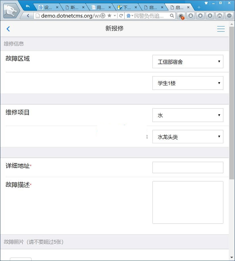 本系统支持二次身份验证,也适合高校、医院等组织使用。当启用二次身份验证时,用户首次报修,需要验证学生姓名和学号。