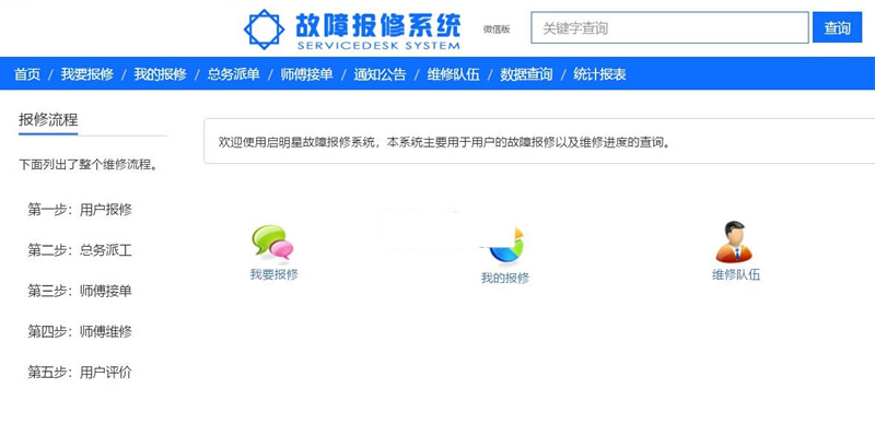 启明星微信故障报修系统Servicedesk可以作为企业故障报修平台。