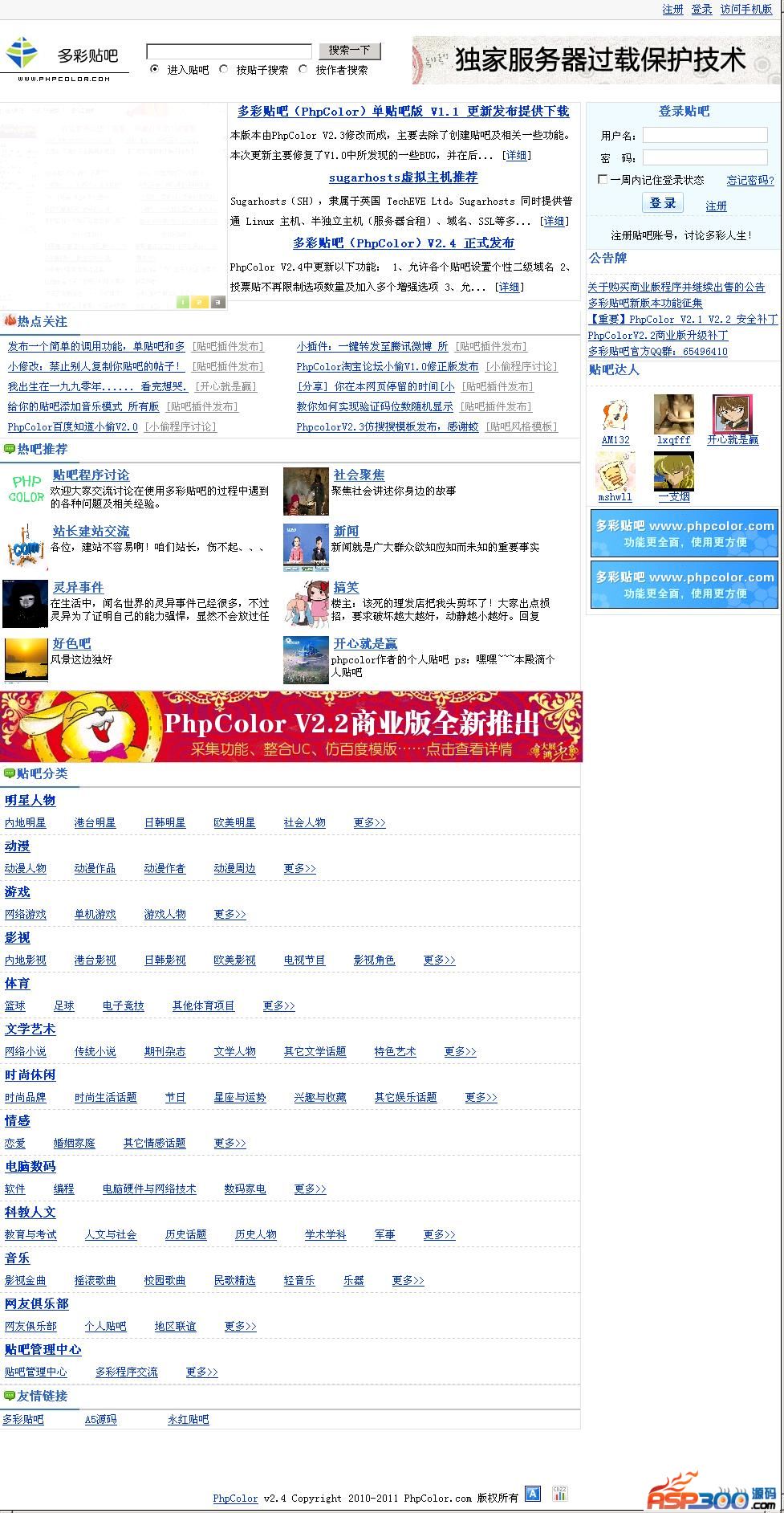 二、多彩贴吧特色:1、强大的单贴吧拓展功能:除基本的贴吧简介、图片等功能外,Phpcolor系统是目前公开发布的贴吧系统中唯一实现可以对每个贴吧设置单独的模版及显示形式设置的,让所有贴吧都可以有自己的独特性。2、独立域名绑定功能:多彩贴吧每个贴吧均支持独立域名绑定,配合强大的单吧扩展性,最终可以实现让用户访问某个贴吧时完全认为自己是在访问独立的网站。3、多条件贴吧排名功能:区别其他贴吧系统的无排名和单纯按发贴数排名,多彩贴吧力求更加准确完善的排名系统,站长可自行设置贴吧用户的各种行为(如:访问贴吧、发贴、回贴、打卡、加入、退出)对贴吧排名的影响,且即便是同一为用户是否登录、是否加入贴吧前后,所做的同样行为都可以有不同积分,最大限度还原贴吧真实人气排名。4、更加完善的关键词屏蔽和广告限制功能:基于目前的广告情况,PhpColor系统不在局限于单纯的对某个单个词语的屏蔽,而是可以以设置权重的方式实现如贴子中同时出现多个违规词语时才进行屏蔽。多彩贴吧独创信用度功能,对每个用户基于其信用度限制时间段发贴数量,力求最大限度保证贴吧用户正常体验,同时又可以最精准的打击贴吧广告党。5、精细的管理员权限分配功能:不在局限于吧主、前台管理员、后台管理员,这种基础的权限分配,对后台管理员可以实现多达57项权限细分。让管理员权限不再混乱。(如:可单独指定某位管理只负责贴吧审核,某人管理则只负责吧主审核)6、确切的前后台操作记录功能:PhpColor系统力求完整记录管理员(吧主)对贴吧的每一项设置,让站长对每个人的操作一目了然,不再发送出现错误却无法找出责任人的情况,最大限度确保网站安全正常运转。7、更多特色功能(身份认证、会员个性首页、VIP会员、会员个性空间等),再此不再一一描述,留待您的体验,不再停留满足于仅仅实现贴吧基础功能,PhpColor的目标做功能最强大的贴吧系统!