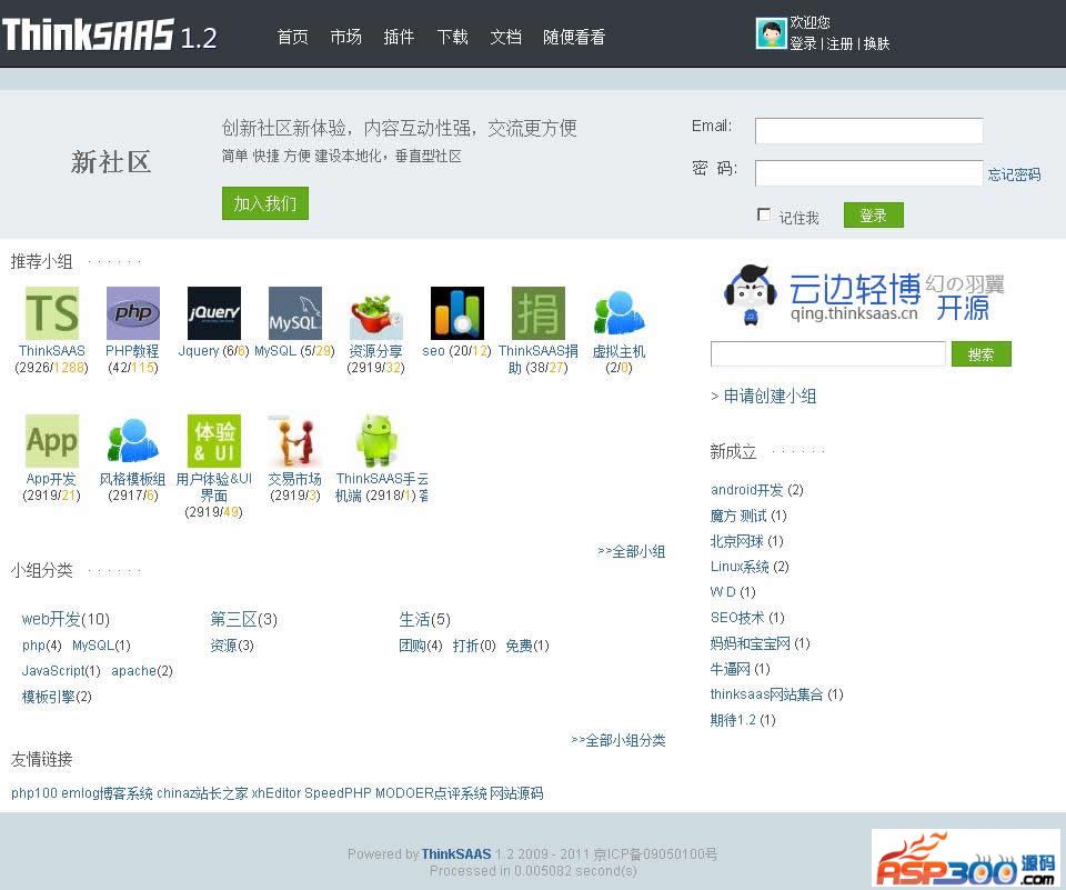 ThinkSAAS为用户提供更好的社区体验,内容互动性强,交流更方便的社区系统。ThinkSAAS简单的系统架构,快速的程序相应效率,方便建设本地化、垂直型社区网站。