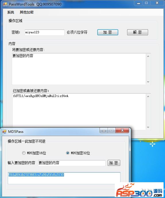 两种加密算法。一种是DES,一种位MD5加密(此加密并非直接调用.net类库中的加密算法)