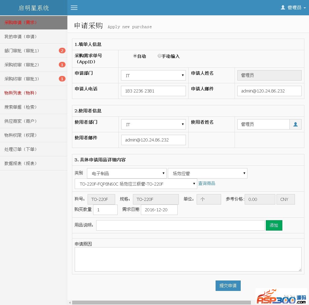 (1)用户申请-部门主管审批-部门经理-采购经理审批-总经理审批。