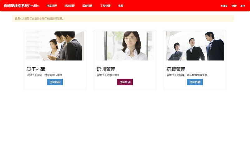 启明星档案系统Profile包含了员工档案管理,合同管理,招聘管理以及工资管理,并提供各种报表与分析 ID:60952 声明:本站所有资源均来源于互联网收集,仅供学习参考使用,如若本站内容侵犯了原著者的合法权益,可联系我们进行处理。