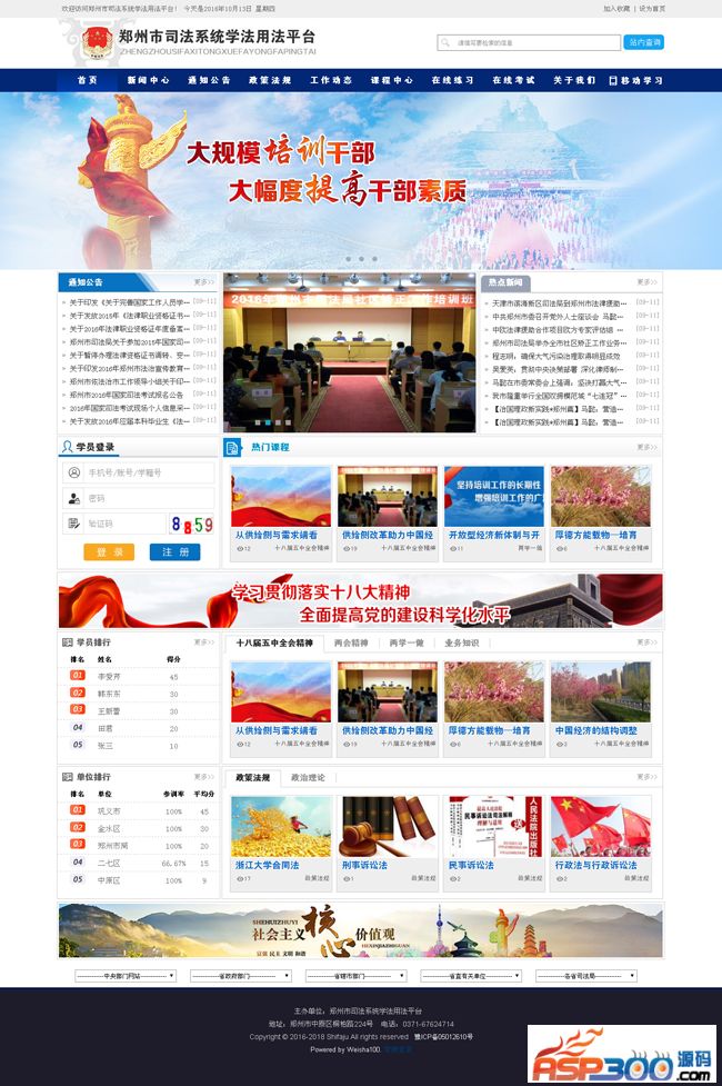 司法局在线培训考试系统是一款基于B/S架构的在线学习系统,专一针对政府单位公务员培训,大规模培训干部,提高干部素质,远程教学,省时省力,便捷高效。系统支持手机端、电脑端,可以在安卓、苹果、微信中使用,方便学员利用碎片化时间进行随时随地的学习,该系统集在线学习、在线练习、模拟考试、在线考试于一体。界面大气,庄重、灵活。Logo、导航栏名称、轮播图等其他基本信息后台均能自定义修改。