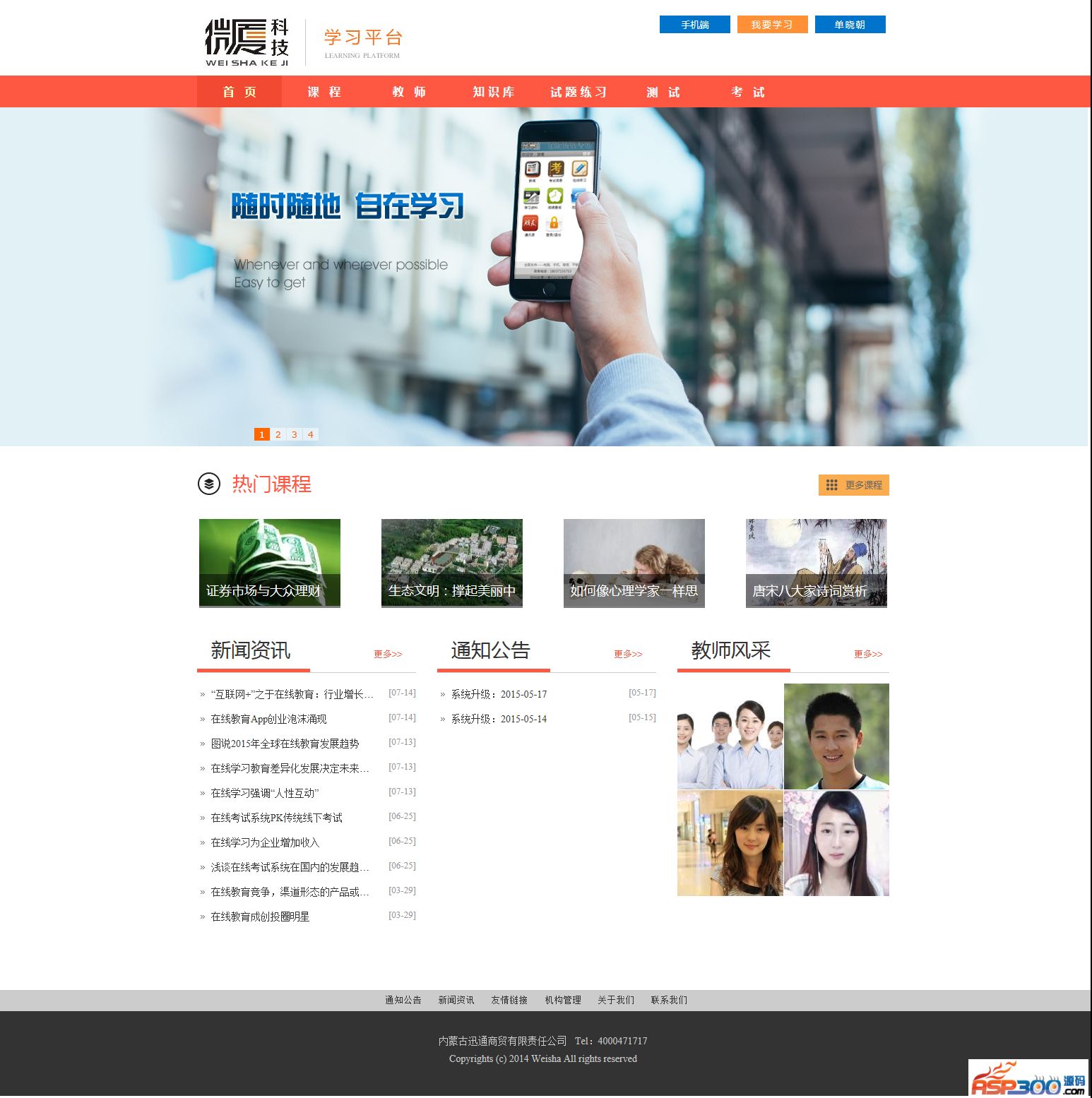 微厦在线考试(试题练习)平台是一款基于B/S架构的在线学习系统,支持手机,可以在安卓、苹果、微信中使用,方便学员利用碎片化时间进行随时随地的学习,可广泛用于培训机构、职业学院、机关单位、企业机构等等。并带有资费管理,可以方便设置学习科目的学习费用,这对于培训机构的远程教学开展更加有利。