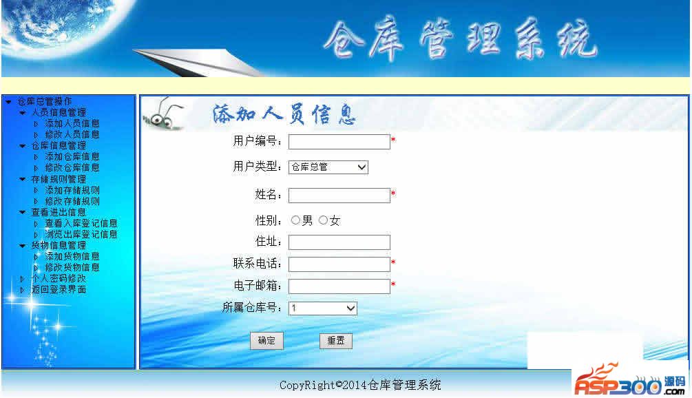 一、源码特点 仓库管理、后台管理、登陆验证、div+css、登陆注册等。二、功能介绍 此系统包括用户登录注册,用户,仓库,货物等基本信息的添加、修改、删除、查询;货物的进货、出货管理等,以及紧急货物采购提醒等一系列仓库管理所涉及的方面。三、菜单功能 1、登陆 2、个人信息管理:添加人员信息;修改人员信息 3、仓库信息管理:添加仓库信息;修改仓库信息 4、存储规则管理:添加存储规则;修改存储规则 5、查看进出信息:查看入库登陆信息;浏览出库登记信息 6、货物信息管理:添加货物信息;修改货物信息 7、个人密码修改 8、返回登陆界面四、注意事项 1、开发环境为Visual Studio 2010,数据库为SQLServer2012,使用.net 3.5开发。数据库连接文件:App_Code/WMS.cs 2、管理员登陆名密码均为:admin