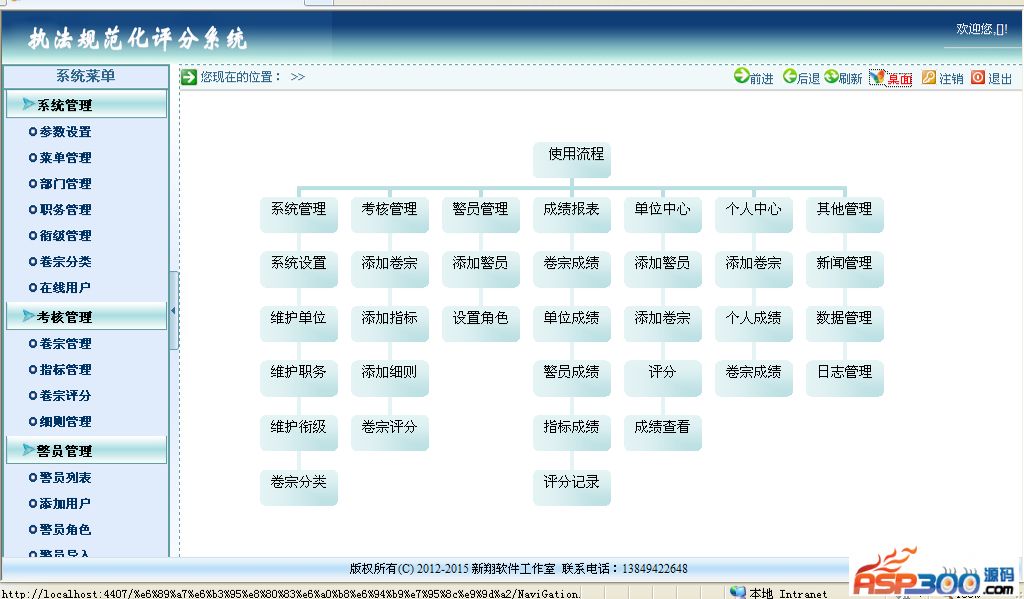 新翔执法规范化自动评分系统是根据公安工作实际研发的针对办案质量的评分系统。可根据自定义项目多角度对办案质量进行评分。并根据评分生成详细的报表。现版本为1.0投放试用以期征求广大客户的使用意见获取更多发展。