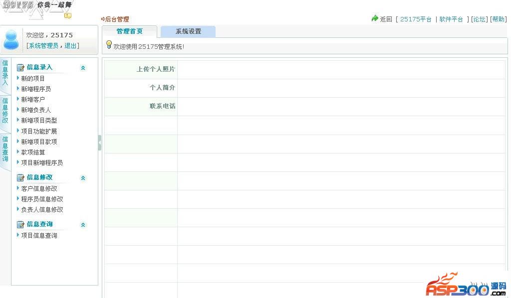 该系统能够方便的录入新的信息例如新的项目、新增客户等同时能够清楚的管理一些款项结算。由于功能的强大,用户可以在该系统上发表文章后让员工递交工作计划或工作报告。加强企业工作效率,为企业提高实力。因为该系统可由客户、程序员、负责人等身份登入 所以适合广大企业使用。