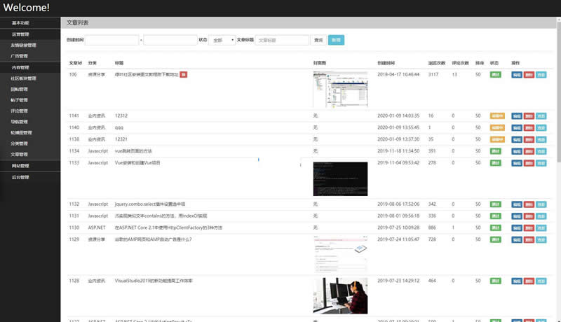 新版本增加了社区功能,后台增加权限管理。注册用户可以编写文章后台审核后可以直接再网站显示。