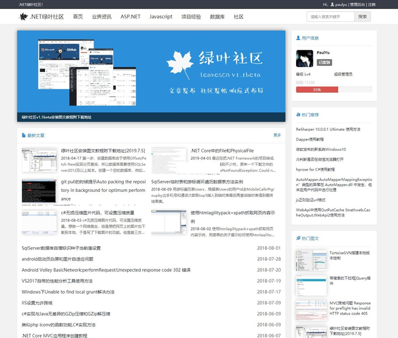 绿叶社区博客v1.1beta采用Wordpress经典两栏风格,样式简约明快,博客功能齐全。使用.NET MVC框架开发,对SQL注入等安全漏洞做过测试,确保程序的安全可靠性。