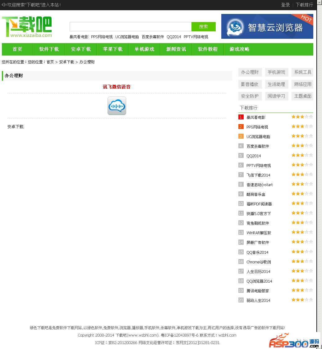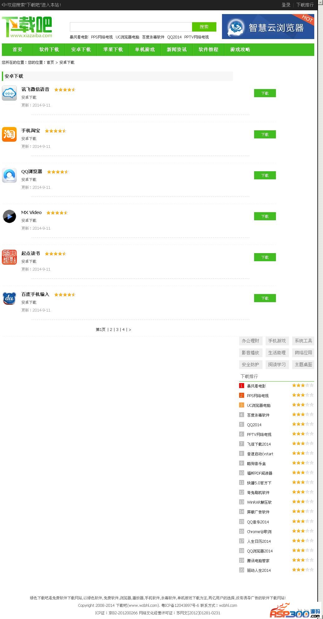 网站功能描述1,全站采用DIV+CSS布局2,采用ASP+ACCESS框架,后期二级修改简单3,栏目支持二级分类4,首页信息丰富,支持软件程序图标上传,排行等5,SEO信息后台自定义管理地址:域名/yousiteadmin/login.asp 初始用户名:admin 初始密码:123