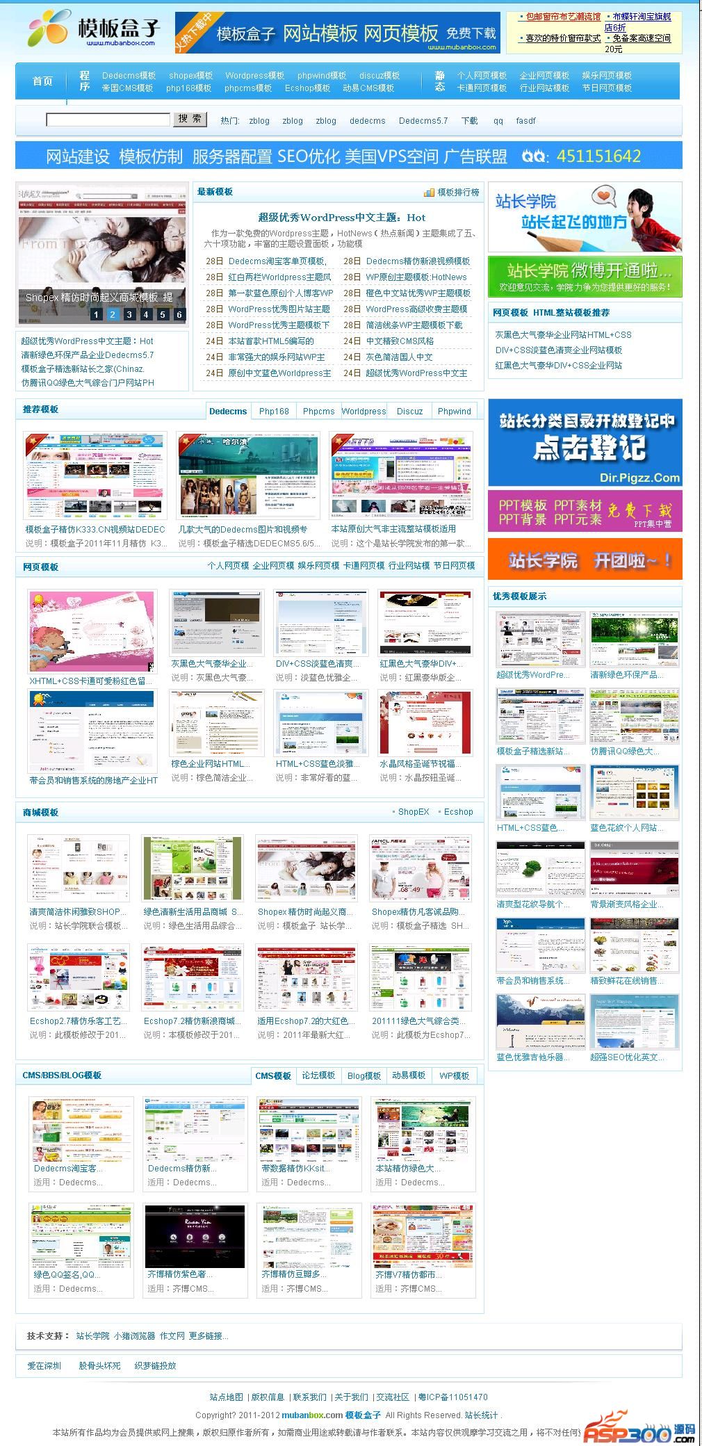 模版盒子(网站模版资源)下载站采用dedecms内核,界面风格以蓝色为主,整站可生成静态HTML,适合SEO,该程序适合做素材资源下载使用,运行环境需支持PHP+MYSQL。